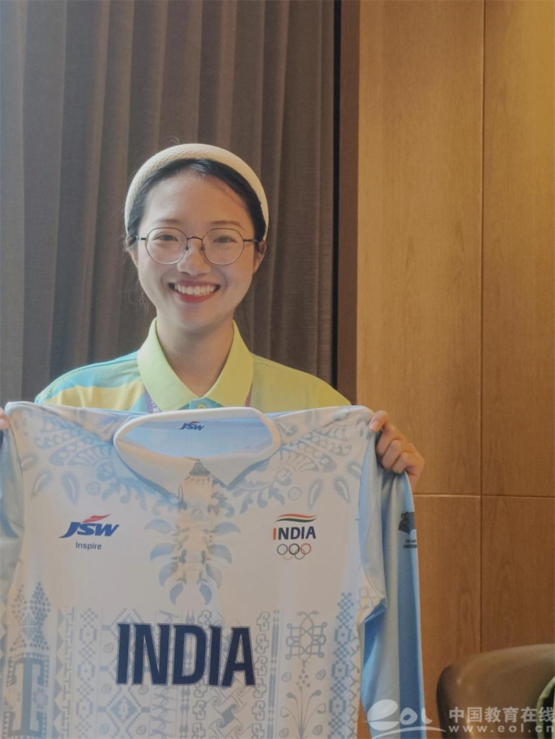 温大龚荣荣同学在亚运分村收到印度队球衣