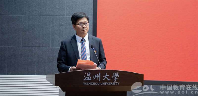 宣讲团教师团团长郭洪欣作代表发言。他表示将以高度负责的态度,通过积极加强宣讲团队伍建设,积极深研温籍数学家精神,积极扩大宣讲团的影响力,努力做好温籍数学家精神的宣讲工作。