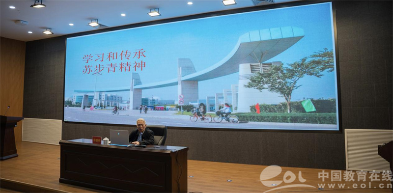 当天还举行了温籍数学家精神宣讲报告会。作为苏步青先生的学生代表,华宣积教授作题为《学习和传承苏步青精神》的宣讲报告,从苏老生平、学术贡献、教书育人等方面,全面展现了苏步青先生爱国奉献、求实创新、教书育人的动人事迹。作为谷超豪先生的学生代表,陈恕行教授作题为《弘扬温籍数学家精神:谷超豪先生感人事迹》的宣讲报告,亦从谷老生平、学术贡献、教书育人全面展示了谷超豪先生热爱数学、勇攀高峰,胸怀祖国、服务人民,甘为人梯、奖励后学的动人事迹。