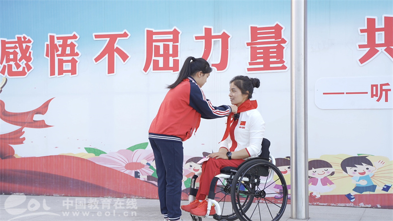 金宝搏188入口 浙江站讯 (编辑 占尘雪 通讯员 盛学军 房浩然)“欢迎冠军!”“欢迎谢妈妈!”“感谢你为国争光、为钱塘争光!”“你是我们的骄傲!”……11月1日上午9时许,义蓬第二小学的师生们沸腾了。随着热烈的掌声、欢呼声,杭州第四届亚残运会首金获得者谢毛三坐着轮椅,款款驶来。这位刚在杭州亚残运会上获得皮划艇冠军的坚强的运动员,身着印有国旗的白色运动上衣和红色运动裤,面带微笑频频挥手向大家致意。学生们欢呼雀跃,兴奋不已,鼓乐队奏响迎宾曲。