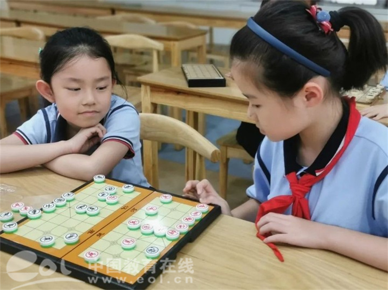 课间十分钟,荷娃们快速摆好棋盘,在楚河汉界的方寸沙场激战中运筹帷幄、排兵点将,提高自己沉着应战的能力。小小棋盘上,只见卒来车挡,炮飞马跳,每一步棋都举轻若重,尽显勇者本色和智者风范。