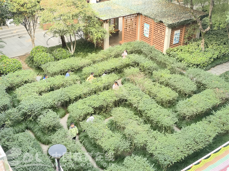 校内绿植之间做了精心的设计,搭建起了园林迷宫阵,荷娃们穿梭在植物之间,不仅感受大自然的清新气息,还要应对挑战。迷宫阵成了“充电站”,荷娃们在迷宫中恣意奔跑,放眼皆是绿植,身心舒畅,拉满快乐值。同学们都说,下了课,就算不走进迷宫玩耍,看看绿植迷宫对眼睛也很好。