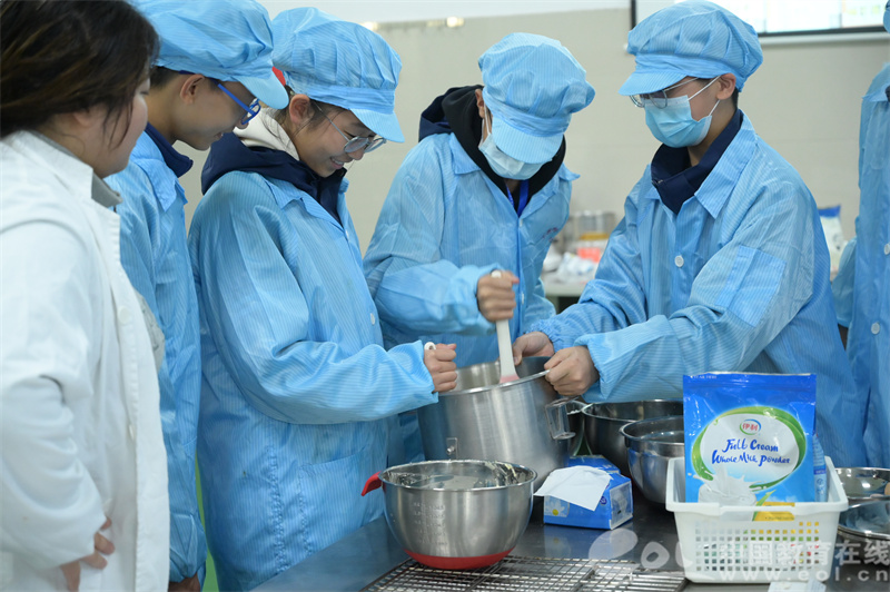 “制作过程不难,但有些繁琐,很需要耐心。”813班的刘凯瑞和方绎彭都表示,实验室的仪器与整个制作过程让他们印象很深,不仅学习到了制作这两样食品的方法,丰富了生活经验,还感受到了大学实验室的氛围,了解到了产品研发的不易和严谨。