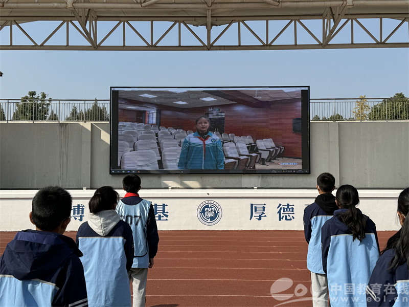 开幕式上,学正中学也隔着万里山海,收到了来自阿克苏八中发来的感谢视频。视频中,新疆同学们伸出友好的双手,微笑着诉说感谢。