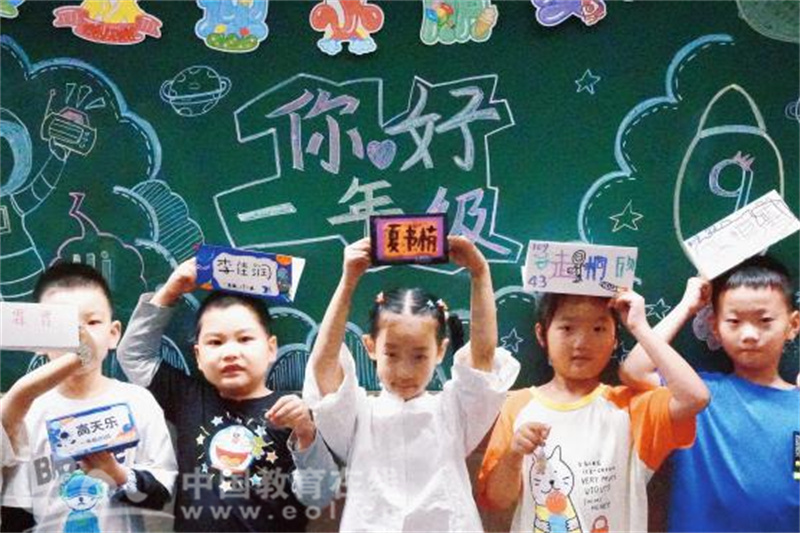 随后,在三年级少先队员的引导下,孩子们有序地回到教室。一间间整洁的教室,一幅幅五彩的黑板画,一份份精美的入学礼,都是老师对孩子最深的爱意的体现。