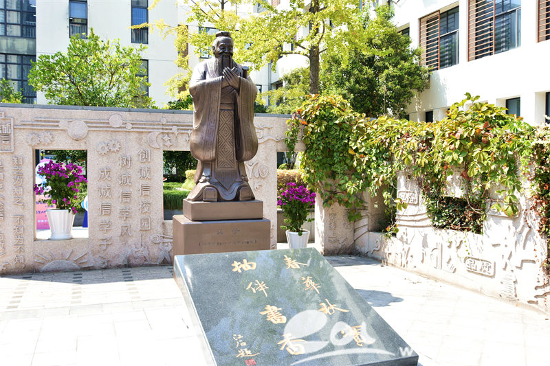 学校将“博学厚德”理念融入到校园环境和校园文化的构建中。学正楼、学思楼、学远楼、学俭楼、正身楼、正行楼、正心楼,充盈着对孩子们“学而求新,正于守道”的教诲;校门口的孔子像、走廊连廊上的古诗词、随处可见的读书角,无不展现出校园的“书香气。自然、和谐的校园风景,潜移默化地浸润学生的心灵。