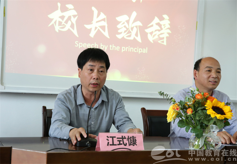 青山原不老为雪白头,绿水本无忧因风皱面。校长江式慷介绍了童晓燕老师的从教生涯。童老师现已从教35年。作为英语教师,童老师带领学生遨游在英语的天地中,用难记的单词,复杂的语法,以及多变的句式来打开世界的大门。临退休的几年,她作为社会教师,一如既往地扑在教学第一线,在课堂上激情洋溢,用生动的语言和丰富的情感,为学生讲授知识,培养学生的爱国主义精神。江校长代表学校衷心感谢童晓燕老师的辛勤付出和无私奉献,对童老师为学校所做出的贡献致以崇高的敬意。鼓励各位教师以童老师为榜样,让教育的初心使命一脉相承,让立德树人的责任永担在肩。