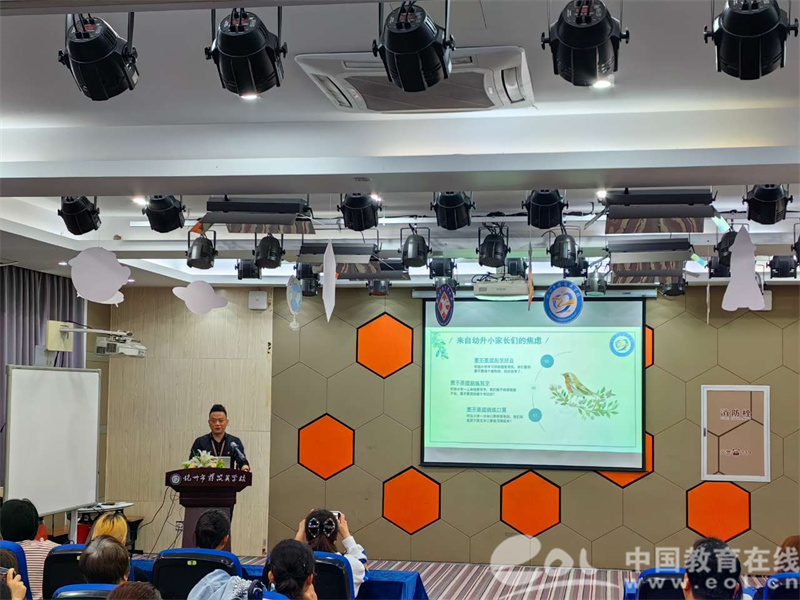 蒋筑英学校校长陈滔和家长们交流《关于小幼衔接的那些事儿》。他从家长们的困惑和教育的五种变化。陈滔分享道,小幼衔接,衔接的不是知识,是能力和学习品质。同时他结合具体实例指导家长可以如何培养孩子良好习惯,根据孩子的实际情况找准方向,科学衔接。
