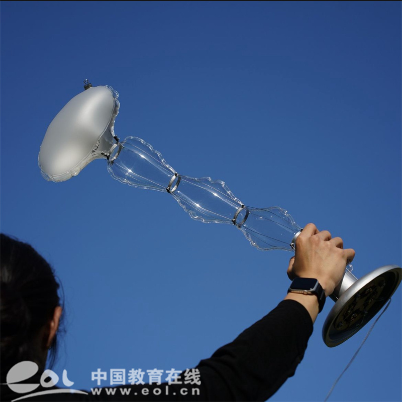 钱畅和卞震的获奖作品——“压力下的形变”(压力气泡灯),初看像一颗晶莹剔透的气泡悬浮空中,一旦点亮,柔和如绸的白光仿佛大自然中的蘑菇云般温柔绽放,极具创意的造型能够瞬间捕获观者的目光。