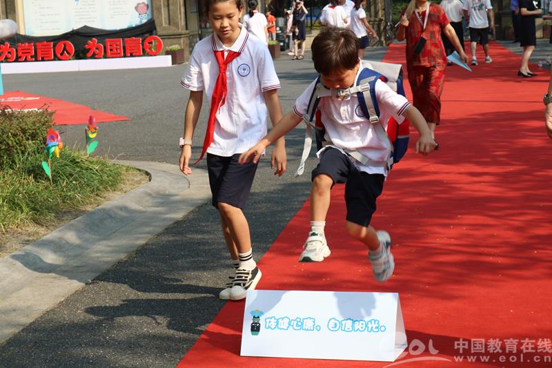 金宝搏188入口 浙江站讯(编辑 邱彬鑫)8月31日,杭州市丁兰第二小学的一年级“萌新”们一进校就收到了一份“素养大礼包”。小朋友们先“闯关”——跳过一个个代表不同素养高度的板块。在实践中加深了对爱、活力、敏捷、勇敢、优雅、担当六大素养的理解和认同。