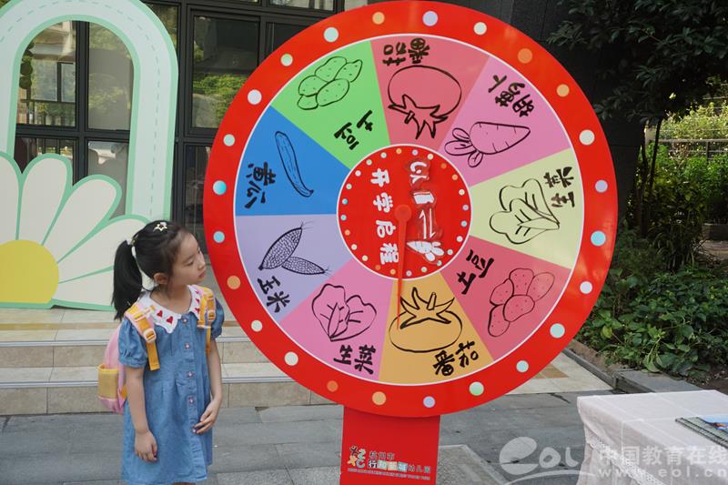 开学第一天,乐乐小朋友踏进幼儿园的大门就见到一个大转盘,把闲置绘本交给老师换取一次“抽奖”机会。用力一转,指针指到了番茄。“太棒了,我最喜欢吃番茄了!”她把用书本换取的番茄带回教室,在班级老师、阿姨的帮助下清洗干净、切成片状,加上其他小朋友换得的各种蔬菜,用两片面包一夹,涂上沙拉酱,就变成了健康绿色的自制蔬菜三明治。