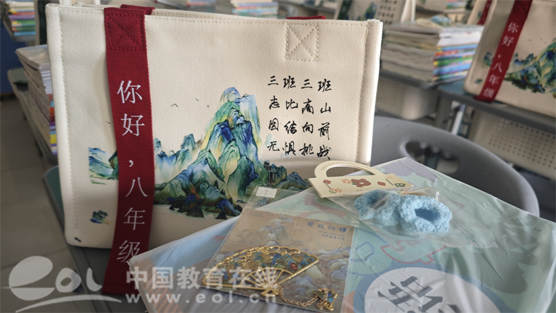 杭州市文海启源中学803班46位同学幸福冒泡啦,他们收到了一份诚意满满的开学礼物——由95后班主任、语文老师朱春祎私人订制的、印有“藏名诗”的帆布包。开学第一天,46只帆布包整齐地摆放在每个学生的桌子上,开学氛围拉满。