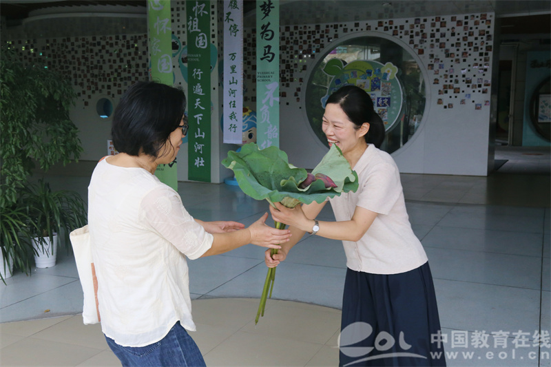已经在长寿桥任教三十余年的李老师,接过莲蓬时笑容满面:“每年教师节学校都会有不同的心意,但今年的荷花和莲蓬尤其特别。它不仅象征着我们教师的清廉与纯洁,更代表了我们整个团队的凝聚力。”李老师从教多年来,见证了无数学生的成长,也感受到教师这一职业的沉甸甸责任。