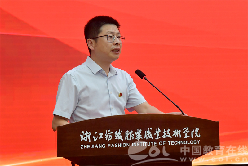 首先,浙纺服院党委副书记陈聪诚作欢迎致辞,向与会嘉宾详细介绍了学校的发展历程和基本情况,对医校党建共建工作寄予了厚望,也提出了殷切希望。他强调,此次活动是医校双方开启“医+艺=爱”党建共建活动的新起点,也是医校双方深化合作、共谋发展的重要里程碑。未来,双方在党建引领下,将朝着“五个一”目标方向努力,致力打造医校党建共建的新高地:建设一个全面过硬的党建联盟(医校党建共同体),锻造一支先锋模范党员队伍,办好一处思政教育实践基地,创建一个党建示范点,铸就一个精品美育实践项目(案例)。