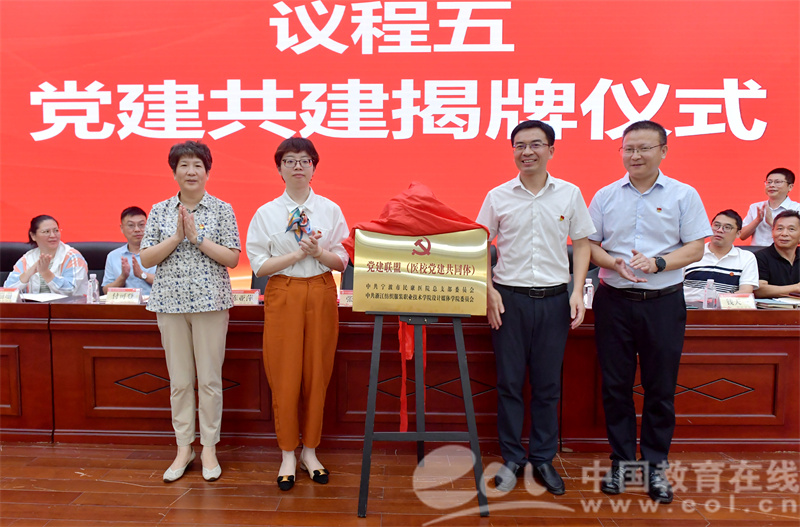 随后,在双方的见证下,由宁波市民政局党组成员、副局长张楠和学校党委委员、党委组织部(统战部)部长李威武共同为党建联建揭牌。双方将以签订协议为起点,携手共进、并肩同行,发挥各自优势,互学互鉴、资源共享,共同谱写医校协同育人、协同发展的新篇章,共同促进双方教育和医疗事业的良好发展。