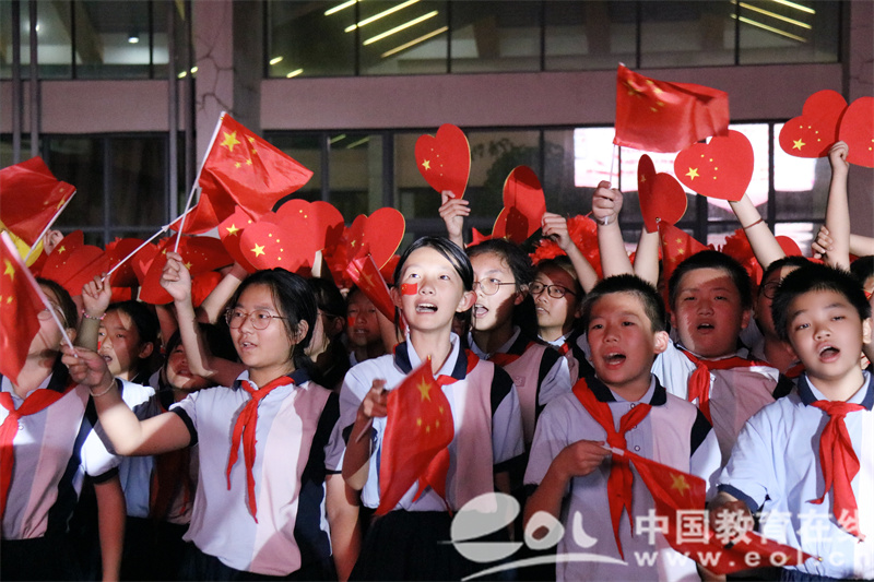 “五星红旗迎风飘扬,胜利歌声多么嘹亮,歌唱我们亲爱的祖国,从此走向繁荣富强……”叶书记缓缓步入人群中央,带领全体师生共同唱响《歌唱祖国》,嘹亮的歌声在校园里回荡,激情与自豪洋溢在每一个人的心间。