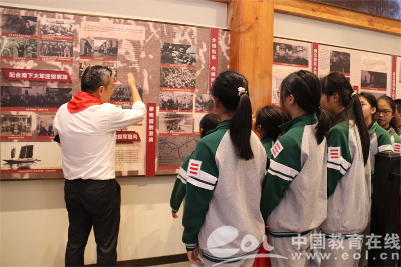 在胥口崤山红色记忆研学馆内,师生们通过聆听宣讲,翻阅史料,观看短片等方式,深入了解了金萧游击支队为解放事业作出的不可磨灭的贡献,深切感受到崤山军民崇高的爱国主义精神和无私奉献的革命情怀。在革命精神的感召下,党员、团员、队员们汲取奋进力量,传承红色基因,更坚定地走好新时代的长征路。