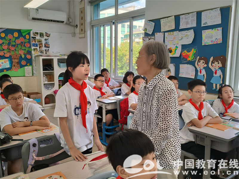 杨明明曾于1962年至1993年任教杭州市天长小学语文学科,耄耋之年的她再次奉献于三尺讲台,把爱的种子播洒给孩子们,传递着伟大的教育家精神。