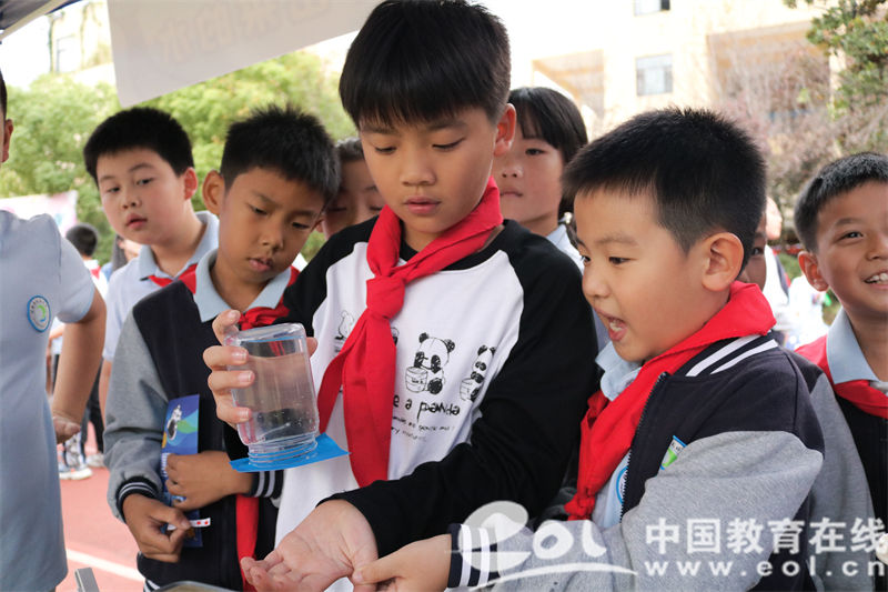 “会跳舞的绿豆,快来体验哦!”“我们这里的文字可以消失,同学你想体验吗?”22日下午,三至六年级各班围绕中华人民共和国成立75周年,开展科技项目的游园体验活动。同学们在近30个科学小实验中游走打卡,感受其中的科学奥秘。