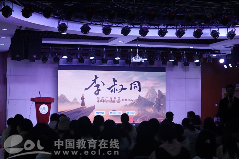 11月20日,由浙江广电集团、中共平湖市委宣传部联合出品,浙江卫视承制的纪录片《李叔同》走进浙江工商大学,与年轻学子们共同探寻李叔同由情缘、艺缘、佛缘构筑的传奇人生,找到所有问题的答案。