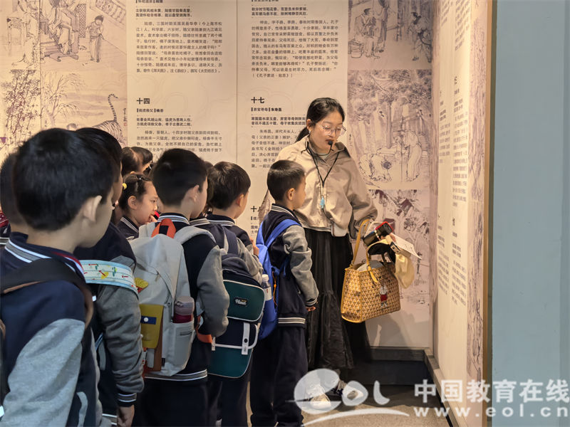 一年级的小可爱们走进“孝道文化馆”,在老师的讲解下学习场馆里的中国传统二十四孝故事,从他们稚嫩的脸庞中看到他们被“卧冰求鲤”等故事感动的神情,也感受到他们对“孝”有了些许理解。