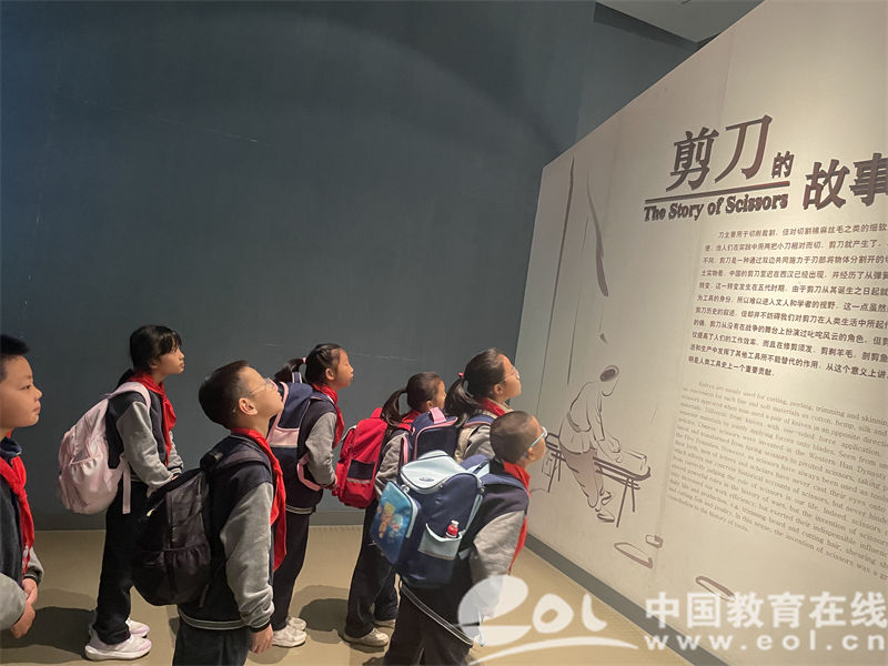 四年级的学生来到刀剪剑博物馆、伞博物馆以及扇博物馆。馆内陈列着从古至今各式各样的刀剪剑、扇子和伞,每一件都诉说着历史。他们或通过小组合作完成研学任务单,或仔细聆听讲解员讲述着各类工艺品在不同历史时期的用途和演变。这次活动更像是一堂生动的历史文化课,让同学们深入了解了中国工匠文化,感受到传统文化的博大精深。