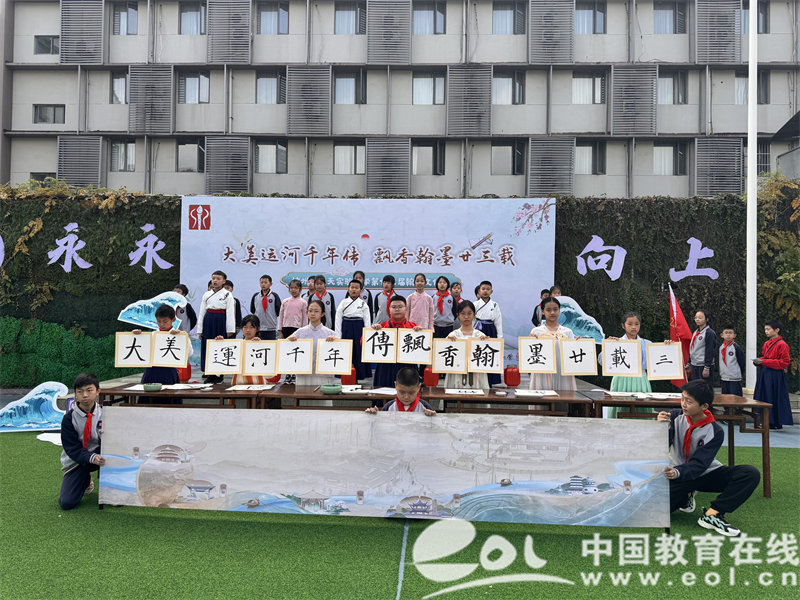 五(3)中队的全体学生用诗词赞美运河,书画小能手们也同步进行现场书画展示,用翰墨传递文化韵味。