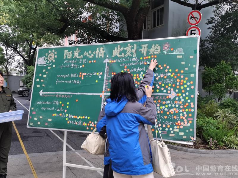 校门口设置有“心情坐标”展示板,同学们一进校就可以挑选自己喜欢颜色的磁力贴,贴在最能描述自己当下心情的词语上。一位男孩主动与心理老师交流,刘老师认出他是心理社团的 “最强大脑”,总是有让同学们脑洞大开的新见解。活动拉近了学生与老师之间的距离,让同学们明白跟心理老师说话可以是自然而然发生的,并非只有心理不正常了才需要找心理老师。