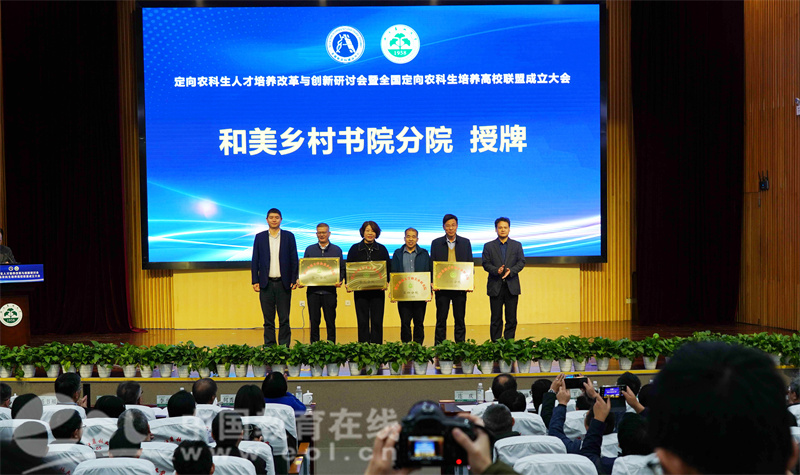 联盟成立仪式上,还举行了浙江农林大学和美乡村书院揭牌仪式。书院将坚持定期开展定向农科生通识课、沙龙活动、读书会等,全面提升定向农科生培养质量,为推进省域农业农村现代化和乡村人才振兴展现担当、彰显作为。和美乡村书院的定向农科生发表了题为《争做“一懂两爱”的新时代定向农科生》的倡议书,倡议全国定向农科生坚定做乡村产业发展的促进者、坚定做乡村建设的推动者、坚定做乡村治理的践行者,呼吁定向农科生携手并进、风雨兼程,共同为打造产业兴旺、生态宜居、乡风文明、治理有效、生活富裕的美丽乡村而努力奋斗,共同书写中国式农业农村现代化的新篇章。