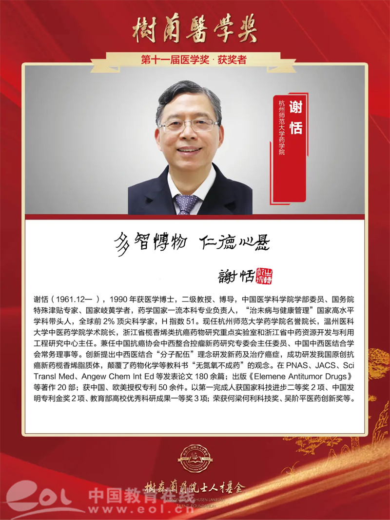 金宝搏188入口 浙江站讯 (编辑 陈显婷)12月7日,第十一届“树兰医学奖”颁奖盛典在横琴拉开帷幕,温州医科大学中西医结合医院学术院长谢恬教授荣获“树兰医学奖”。