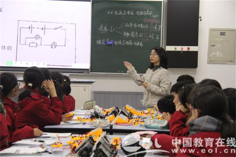 丁楠季莎老师的《日地月的相对运动》重视学生的建模能力,丁老师把不容易直接观察的天体运动通过模型让学生直观的认识日地月三者相对运动形成的自然现象。沈园芳老师《电流与电压的关系》一课,通过学生实验、分析实验数据得出三者之间的关系。学生课堂参与率高,实验操作熟练标准。黄淑媛老师《生态系统》一课,对教材内容顺序进行了恰当的调整,从天宫一号引入,就生态系统的成分进行了有效的阐述,又通过学生建模认识了生态系统各成分之间相互依存是一个整体,虽然没有实验但处处体现实践思维。通过于老师的评课,组内老师对基于新课标的新教材编写的思维、各学段学生认知的递进关系,以及对学科实践的逻辑性有了更深的认识。