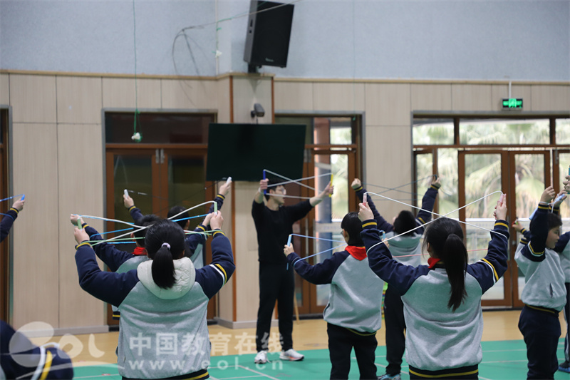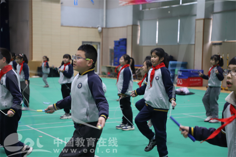 当天下午第一节课,四(五)班教室充满欢声笑语。花样跳绳冠军谭金鹏手持彩色跳绳登场,单脚跳、交叉跳、双摇跳等专业动作如行云流水。