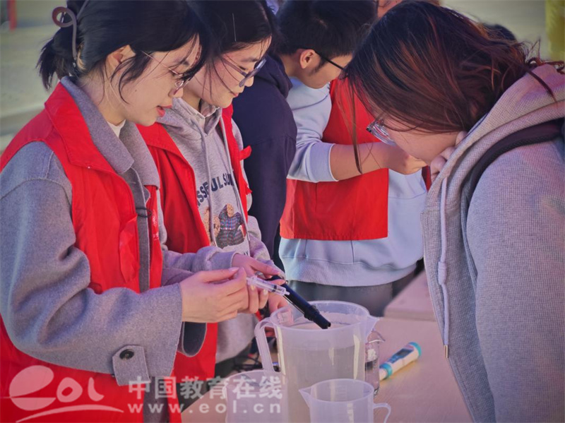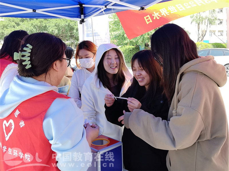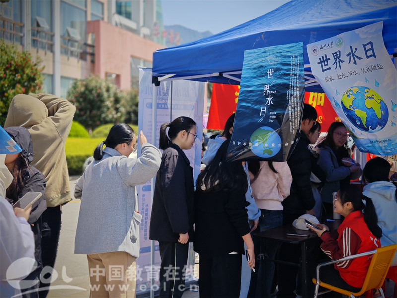 水畔宣讲处,声声入人心。“今年世界水日的主题定为Glacier Preservation,译为冰川保护……”宣讲员用通俗易懂的语言讲述着保护水环境问题的重要性,指着现场展示的活动海报,倡导大家共同为改善水环境贡献力量,驻足的师生纷纷在倡议书上签名,以表达他们对水环境保护的支持。