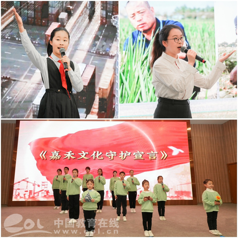 嘉兴大学附属第一小学金念念同学的主题演讲《追寻红色记忆 传承奋斗精神》,生动展现了红色文化的力量和新时代青少年的使命担当,坚定了大家守护和传承嘉禾文化的信念。嘉兴大学经济学221的俞芝怡同学的共同富裕宣讲《统筹城乡 开启幸福路》,解读共同富裕的深刻内涵,展现了新时代学子助力城乡协同发展、迈向幸福生活的坚定决心。来自嘉兴市大、中、小学和幼儿园的学生代表深情朗诵《嘉禾文化守护宣言》,发出了不同学龄段嘉禾儿女共同守护文明之光、赓续红色血脉、创变未来图景、践行守护誓言、传承千年文脉的庄严承诺。