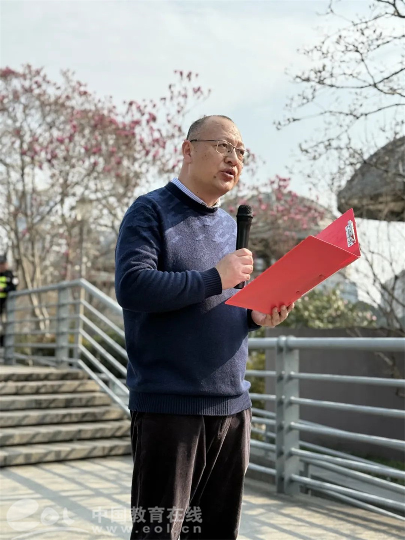 毅行半程之后,师生们抵达了风景秀丽的杭州西湖文化广场。陈积粮校长站在广场中央,发表了振奋人心的讲话。他深入剖析了当前面临的紧张形势,言辞恳切地为同学们明确目标,鼓励大家奋勇拼搏。陈校长的话语如同一束温暖而明亮的光,穿透了同学们心中的迷茫,照亮了他们前行的道路,让大家更加明晰努力的方向。在学校领导的关怀与支持下,相信同学们定能勇往直前,不负所望。