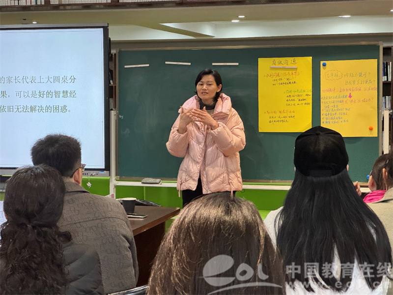 第二环节小组展示交流中,五个小组的家长在思维的碰撞中,都对所选的话题有了更深入的理解。各小组家长的分享能够结合自身的经历感受,又在“导师”的引领下进一步提炼总结经验。整个分享过程中,各位家长专注倾听,感同身受,笔记频频。