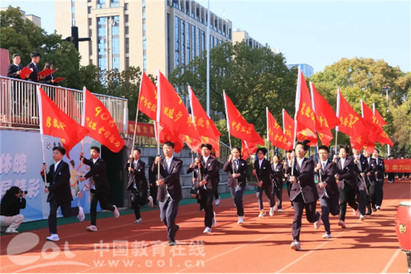 随着战鼓擂响,各班的旗手挥舞班旗,学生代表以“圣火传递”之势接力奔跑,将象征希望的“笔”送至主席台。学生代表与王龙校长共同挥毫写下“折桂”二字,这一刻,青春的热血沸腾翻涌;少年执笔为剑,写下豪迈奋进的篇章。