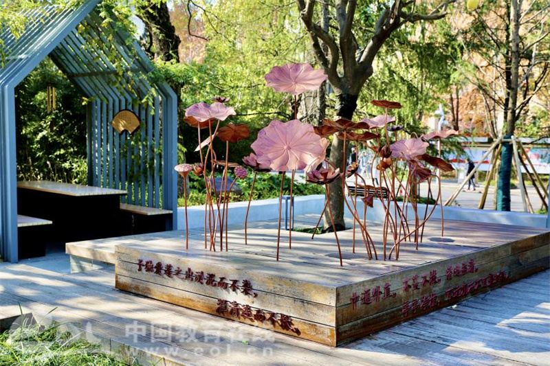 一直以来,浙江传媒学院党委、纪委高度重视廉洁文化建设和廉洁育人实效,自2021年开始打造“清风颜品”校园廉洁教育基地,以杭州钱塘校区“中心湖”和桐乡乌镇校区“思镜湖”为阵地,依湖而建,以“清风徐徐,廉润初心”为主题,分别建设“清风角”“清风广场”,并以此为中心,设立“习廉典”“识廉人”“读廉书”“溯廉脉”“善廉行”“传廉风”等10余大板块,摆放40块主题清廉石、113块各式宣传牌,把中华优秀传统文化、革命文化、“红船精神”、社会主义先进文化中的清廉和育人元素和校园景观有机融合,一步一景致、一景一心思,推动廉洁教育潜移默化地融入师生日常生活。
