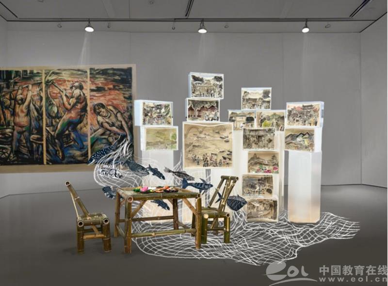 从去年11月开始构思到最终展出,创作团队历经8个月的精心打磨。学校墨韵国画社、版画社、造物社通力合作,在上城区青少年活动中心专家沈正宏、区美术教研员胡俊攀的悉心指导下,作品历经十余次修改完善。指导教师董菁表示:“我们引导学生从九堡渔市这一平凡的生活场景出发,通过艺术实践,最终感悟到生活是艺术的源头,而艺术则赋予生活升华的力量。”