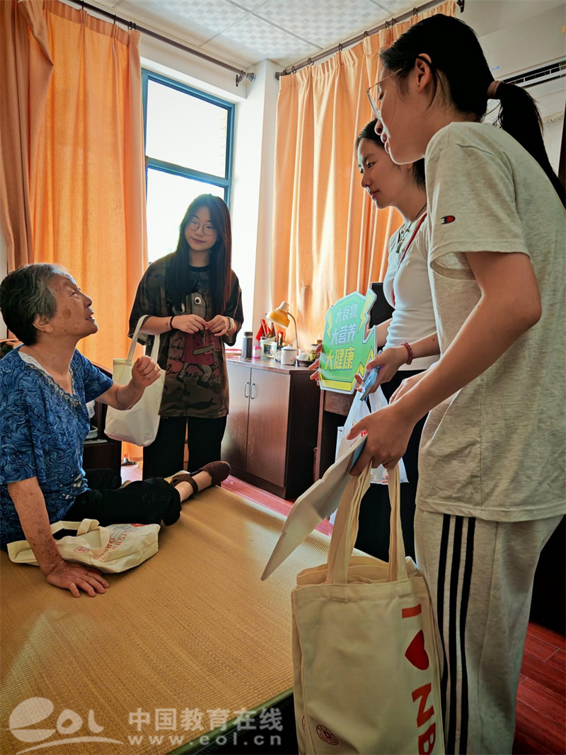 在不久前的社会实践中,张津叶和几位同学组成了社会实践服务团,依托所学专业知识,走进老年乐园开展以“食品与健康”为主题的康养科普宣讲活动。