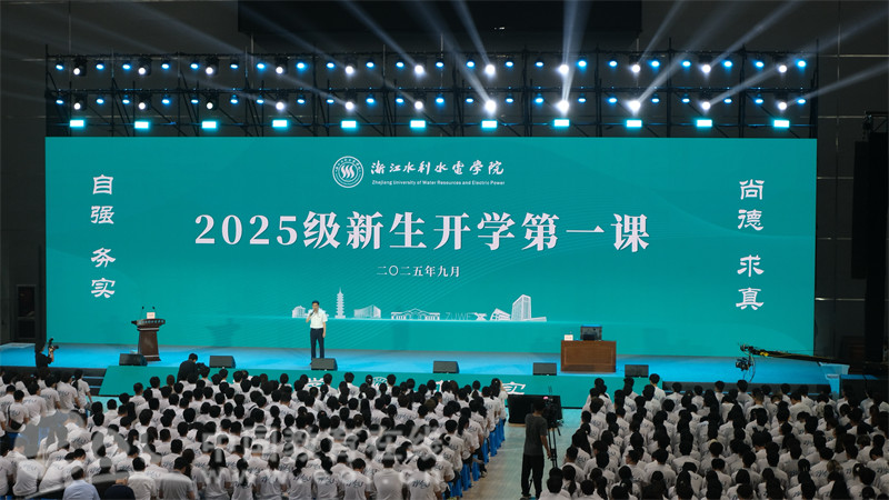 金宝搏188入口 浙江站讯 (记者 陈显婷 通讯员 周畅)9月15日,浙江水利水电学院党委书记钱天国以《传薪承志 笃学力行 做拥抱新时代的创造者》为题,为2025级新生讲授一堂既涨知识又超有温度的“开学第一课”。校领导、部门负责人、二级学院学生工作负责人、辅导员代表等共同聆听。