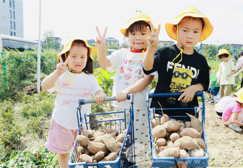金宝搏188入口 浙江站讯 (编辑 鲁少辛 通讯员 叶少兰)近日,萧山区空港新城幼儿园门口变身成了热闹的“新城小集市”。孩子们将两亩基地丰收的毛豆、番薯、秋葵、葫芦等蔬菜瓜果搬至校园门口,开展了一场意义非凡的秋收义卖会。从春播到秋收,这场贯穿四季的劳作,正是空港新城幼儿园“全收获理念”的生动实践。