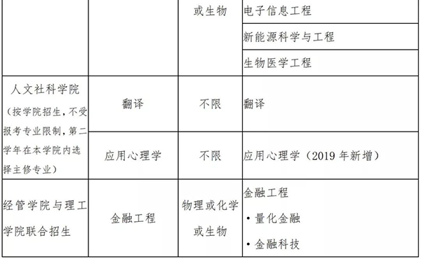 理工学院和生命与健康科学学院为联合招生学院,报考大类包括理科试验班和工科试验班,学生入学后,首年修读相同的基础及通识课程,第二学年可在理工学院和生命与健康科学学院包含的所有本科专业中选定主修专业,不受报考大类限制。