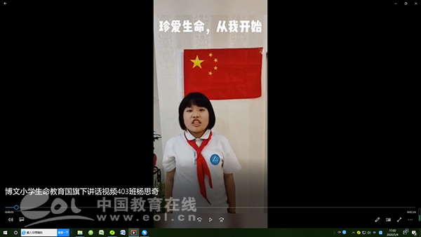 除此之外,开展生命主题教育的国旗下讲话活动,学生在庄严的仪式下,再次感受到生命的重量,生命的神圣。4月27日,开展了室内升旗仪式,全体学生在教室观看生命主题教育的国旗下讲话视频。学生通过观看视频,进一步明白了生命的珍贵,理解了生命的内涵。