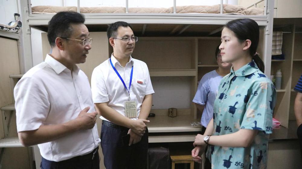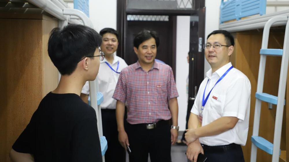 从报到点的流程安排到教室、宿舍、食堂等生活空间,从读书休闲运动场所到洗衣房、公共厨房等配套设施,领导和老师们仔细查看、耐心询问、认真倾听。童晓晖要求全校各单位用心做好服务工作,从小处入手,在细处落实。王杰法叮嘱各校区要以同样标准精细化、人性化做好迎新接待服务工作,让新生和家长们感受到家一般的温暖。
