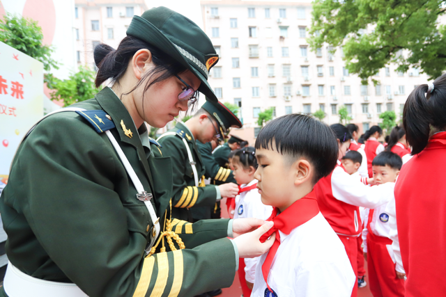 “从今天起我要加强锻炼、刻苦学习,争做其他同学的榜样。”“听了哥哥姐姐们参军报国的故事,我很激动。争取以后我也能和哥哥姐姐一样走进军营、保家卫国!”……抚摸着胸前鲜艳的红领巾,新入队的同学们格外兴奋,纷纷给自己立下了新目标。