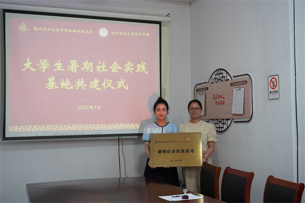 7月24日,浙江省衢州市开化县华埠镇枫树底社区与浙江财经大学会计学院签订《大学生暑期社会实践基地共建协议书》,并举行暑期社会实践基地授牌仪式,双方就实践基地建设相关事宜展开交流。