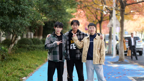 徐尉庭对于天浩和叶沛欣的了解,主要来自他们一起在杭电智能车集训队打拼的经历。三名同学从大一开始就参加了杭电王牌竞赛团队——“校智能车队”。从100多人到逐步考核选拔“只留十几人”,最终三兄弟都留下来了,同时,三人也获得了第十七届全国智能车赛的一等奖。其中徐尉庭和叶沛欣还同属智能车航天物流组,“并肩携手拿下了一等奖”。
