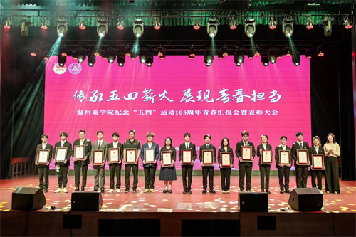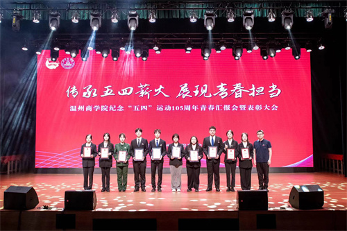 “五四”前夕,该校举行纪念五四运动105周年青春汇报会暨表彰大会,围绕“以此薪火 传承百年”“以此榜样 勇担使命”“以此新篇 歌其青春”三个篇章,以新民主主义革命时期、改革开放和社会主义现代化建设新时期、中国特色社会主义新时代为时间线,通过情景宣讲《中国共青团的诞生》、群舞《觉醒年代》、话剧《中国第一位个体工商户章华妹》、情景朗诵《到祖国最需要的地方》、集体合唱《绒花》等形式,展现了一堂别开生面的思政实践课,同时表彰了一批在志愿服务、创新创业等系列活动中涌现出的青春榜样。