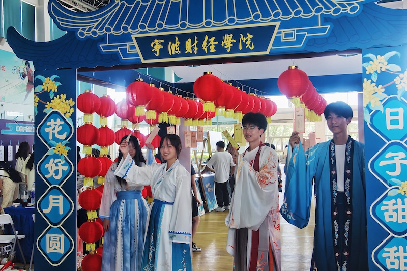 猜灯谜、做月饼、飞花令……中秋节来临前夕,宁波财经学院的校园里灯笼掩映,诗情画意,师生们共聚一堂,开启了一场主题为“月满中秋 情满宁财”的中秋游园会。